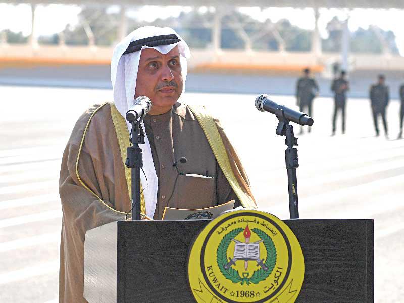 وأوضح أن آمال وطموحات الوطن بين أيديكم اليوم، فكونوا أهلاً لتحمل المسؤولية الملقاة على عاتقكم، مستشعرين لأهميتها، مستعدين للقيام بواجباتها، محافظين من خلالها على قسمكم، داعياً الخريجين إلى وضع مصلحة الكويت والتضحية من أجلها والتفاني في خدمتها نصب أعينكم، متسلحين بالعلم والتدريب والانضباط للمضي قدماً في استكمال مسيرة من سبقوكم من منتسبي القوات المسلحة، الذين قدموا أروع صور التضحية والفداء في سبيل حفظ أمن الوطن واستقلاله والذود عن سيادته وترابه.وأشار إلى أنه تمر بنا خلال الأيام القادمة ذكرى العيد الوطني الـ 60 والذكرى الـ 30 ليوم التحرير، اللتان نستذكر فيهما بكل مشاعر الفخر والاعتزاز التضحيات الجليلة والبطولات الكبيرة التي قدمها حماة الوطن من منتسبي القوات المسلحة، عبر تاريخ مشاركاتهم الحافل بالعطاء، لافتاً إلى أنهم سطروا من خلاله أبهى صور الشجاعة والفداء دفاعاً عن وطنهم وحفاظاً على سيادته، فكونوا دائماً على نهجهم سائرين، وعلى مسيرتهم محافظين، وببطولاتهم مقتدين.ونقل إلى الجميع "تهنئة ومباركة صاحب السمو أمير البلاد القائد الأعلى للقوات المسلحة الشيخ نواف الأحمد، وسمو ولي عهده الأمين الشيخ مشعل الأحمد، وسمو الشيخ صباح الخالد رئيس مجلس الوزراء، وذلك بمناسبة تخرجكم، كما يسعدني أن أبارك لكم وأهنئكم على نيلكم للثقة السامية وصدور المرسوم الأميري بتوليتكم ضباطاً بالجيش الكويتي"، مضيفاً: "كما أبارك كذلك لأبنائي الخريجين من منتسبي الحرس الوطني الذين يشاركوننا دائماً في مسيرة العطاء والبذل والتضحية لخدمة وطننا الغالي، وأبنائي الخريجين من منتسبي الدول الشقيقة الذين تربطنا بهم أواصر المحبة والأخوة والمصير المشترك".وأعرب وزير الدفاع، في ختام كلمته، عن بالغ شكره وتقديره لمنتسبي كلية علي الصباح العسكرية من قادة وضباط ومعلمين ومدربين وإداريين، على ما بذلوه من جهد وإخلاص وتفانٍ بالعمل لإعداد وتأهيل هذه الكوكبة من الضباط الخريجين، داعياً المولى عز وجل أن يحفظ وطننا الغالي من كل مكروه وأن يديم عليه نعمة الأمن والأمان والعزة والرفعة في ظل القيادة الحكيمة لصاحب السمو وسمو ولي العهد الأمين.فخر واعتزاز