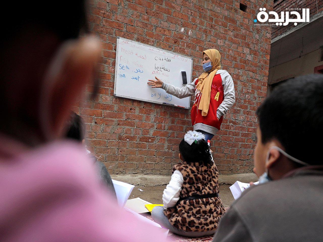 يتجمع نحو 30 طفلاً يومياً لمراجعة دروسهم المدرسية في شارع ضيق بإحدى قرى محافظة الدقهلية بشمال مصر.ومعلمة هؤلاء الأطفال طفلة منهم، هي ريم الخولي «12 عاماً»، وبدأت توجيه جيرانها الصغار في قرية أتميدة، التي تقع على بعد نحو 80 كيلومتراً شمال شرقي القاهرة، عندما أُغلقت المدارس في أنحاء مصر بسبب جائحة فيروس «كورونا».قالت ريم «كورونا قفلت المدارس وخلت الأولاد ميروحوش المدرسة، فأنا حبيت أنزل الأولاد اللي في الشارع وأعلمهم مرة واتنين وتلاتة».
