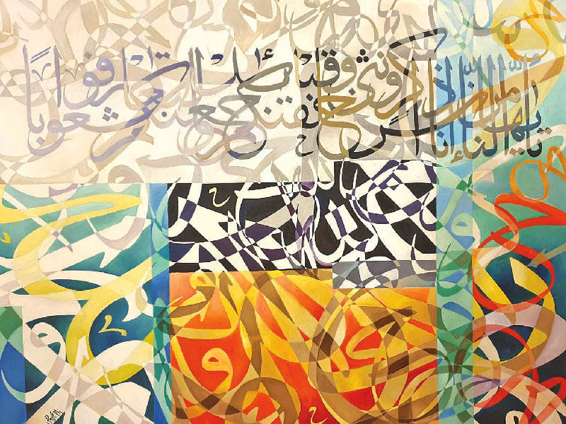 - اتقان الخط (الثلث)، وهي لبنة أساسية في عملي التشكيلي الحروفي، وثانياً اللون وتدرجاته اللامتناهية، وثالثاً بناء العمل التشكيلي، ورابعاً وهو الأساس المهم، العلم والموهبة.• يلاحظ أن لوحاتك لا تحمل عناوين دالة عليها، فما سبب ذلك؟- لا أحب حصر العمل الفني بعنوان، وأفضل تركه للمتلقي، وأعتقد أن مضمون اللوحة هو العنوان.• بمَ تنشغل راهناً؟- حالياً أعمل على تنفيذ عمل حروفي عن الإنسان، وعمل آخر عن الأمراض وأثرها على الإنسان.رسالة