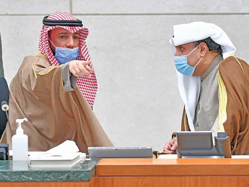 وكانت الجلسة شهدت، في بدايتها، انسحاب النائبين بدر الداهوم وصالح المطيري اعتراضاً على السماح للوزراء المستقيلين بالحديث، حيث طالبا بأن يقتصر الحديث على رئيس الوزراء المكلف فقط.وتحدث رئيس الوزراء، في نهاية الجلسة، مقدماً الشكر إلى الكوادر الطبية والعاملين في الصفوف الأمامية، معقباً: «نتألم تجاه من تضرر، لكن الألم الأكبر عندما نرى هذا الوضع المستمر بالصعود».وخلال الجلسة رأى وزير الصحة الشيخ د. باسل الصباح أن «جائحة كورونا لن تنتهي وستظل معنا إلى يوم القيامة»، مؤكداً أن «السبيل الوحيد هو أخذ اللقاح».افتتح رئيس مجلس الأمة مرزوق الغانم، في التاسعة والنصف من صباح أمس، الجلسة الخاصة بمناقشة الإجراءات والسياسة الحكومية في التعامل مع فيروس كورونا، والسلالات المتحورة عنه، والقرارات الحكومية وتداعياتها، بعد أن رفع الجلسة مدة نصف ساعة لعدم اكتمال النصاب. وخلال تلاوة الأمين العام عادل اللوغاني أسماء الحضور والمعتذرين، قال بدر الملا "الأخ الرئيس ليس هناك نصاب كيف افتتحت الجلسة؟!".وطلب وزير الصحة الشيخ د. باسل الصباح من المجلس السماح بدخول الفريق المرافق لتقديم عرض التطورات أمام مجلس الأمة.وقال بدر الداهوم، في نقطة نظام، "نحن نحضر جلسة مع حكومة مستقيلة، ولن نقبل بأن يتحمل المسؤولية أي وزير باستثناء رئيس الوزراء المكلف، وإلا سوف أنسحب من الجلسة، لأنه سيأتي غدا وزير ويقول لنا لا أتحمل المسؤولية".بدوره، ذكر صالح الشلاحي: "أؤيد ما ذهب اليه الداهوم، فلا نقبل أن يشرح موقف الحكومة إلا رئيس الوزراء".وعلق وزير الدولة لشؤون مجلس الامة مبارك الحريص قائلا: "الحكومة حاضرة بناء على طلب نيابي مقدم من الإخوة النواب لبحث تداعيات جائحة كورونا ولهذا حضرت الحكومة".وأفاد سعدون حماد: "سبق أن حضرت حكومة مستقيلة، وصوتنا على قانون الرياضة فلماذا هذا التناقض، والنواب المعترضون اليوم هم أنفسهم المشاركون في جلسة خاصة للتصويت على قانون الرياضة والحكومة كانت مستقيلة".وأشار بدر الملا إلى أن الجلسة ليست مقتصرة على وزارة الصحة، والطلب لعقد الجلسة على تداعيات الجائحة ومنها الاقتصادية. وانسحب النائبان بدر الداهوم وصالح الشلاحي من الجلسة بمجرد بدء وزير الصحة باسل الصباح الحديث.