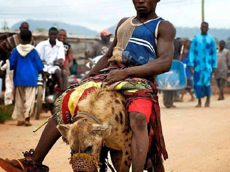 قبيلة نيجيرية تروّض الضباع وتقطع السيوف بأسنانها