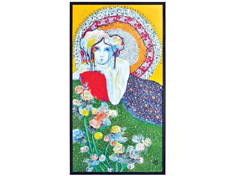 - أستفيد من كل التقنيات والخامات، وأحاول تطويعها بناء على الفكرة. على سبيل المثال استفدت من دراستي المتخصصة في التصوير الجداري في جعل خلفيات لوحاتي بشكل مختلف، فأحياناً أتعمد تنفيذ الخلفيات متناقضة، وأحياناً تنقسم الخلفية إلى أقسام مختلفة الأشكال والتصاميم لكنها متناسقة ومتناغمة في آن واحد.• لماذا اخترتِ «إنهن غير أحياء» عنواناً لمجموعة لوحاتكِ في معرضك الأخير؟
