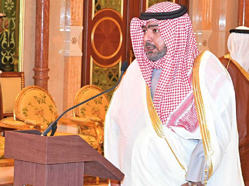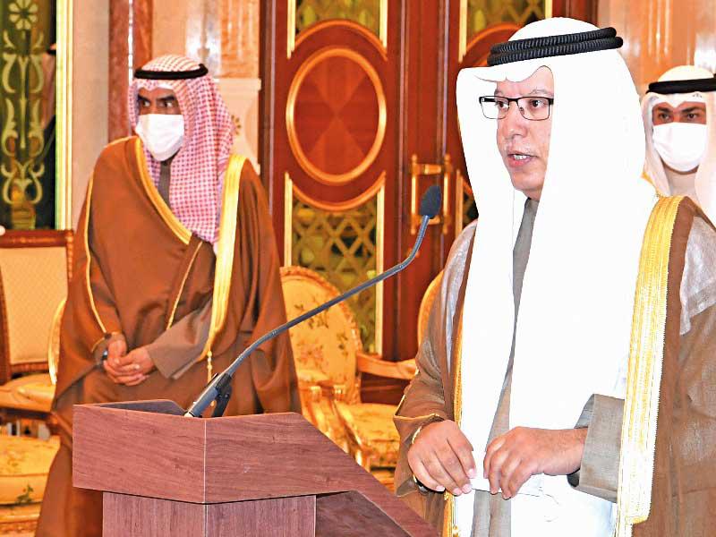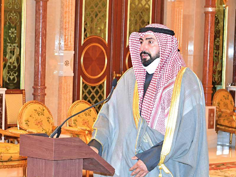 الخالد يلقي كلمته أمام صاحب السمو وسمو ولي العهد بعد تقديم حكومته وأداء اليمين أمس