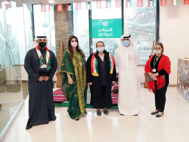 نظم البنك التجاري فعالية الاحتفال بالعيد الوطني وعيد التحرير مع موظفيه، من خلال إقامة جناح تراثي مصغر، في المقر الرئيسي للبنك، مراعياً في ذلك تطبيق جميع الاشتراطات الصحية والتباعد الاجتماعي، حرصاً على صحة وسلامة جميع موظفيه. وقد حظي الجناح بحضور رئيس مجلس إدارة "التجاري" الشيخ أحمد الدعيج، ورئيس الجهاز التنفيذي الهام محفوظ، وفريق الإدارة التنفيذية، بما يعكس حرص الإدارة العليا بالبنك على مشاركة موظفي البنك فرحة الأعياد الوطنية.