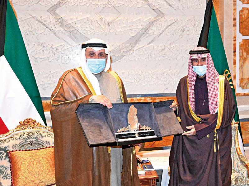 استقبل صاحب السمو أمير البلاد الشيخ نواف الأحمد بقصر بيان صباح أمس سمو ولي العهد الشيخ مشعل الأحمد، كما استقبل صاحب السمو بحضور سمو ولي العهد رئيس مجلس الوزراء سمو الشيخ صباح الخالد. ثم استقبل رئيس مجلس الأمة مرزوق الغانم.واستقبل صاحب السمو، أمس، نائب رئيس مجلس الوزراء وزير الدفاع الشيخ حمد الجابر، حيث قدم لسموه، رعاه الله، درع مشروع «محور صباح الأحمد»، الذي أهدي لسموه من قطر، خلال حفل افتتاح المشروع.