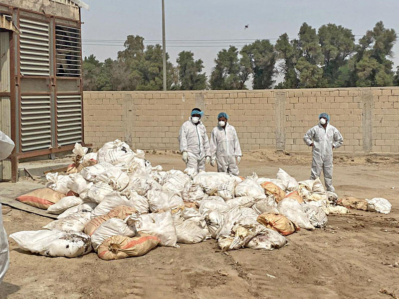 بعد اكتشاف حالات لإنفلونزا الطيور في مزرعتي دواجن بالعبدلي والوفرة، قامت الهيئة العامة لشؤون الزراعة والثروة السمكية بحملة إعدامات للدواجن المصابة صباح أمس، حيث بلغ عددها 98 ألفا خلال يومين فقط، في ظل احتمالية ارتفاعها الى 350 الفا، للتأكد من خلو المزرعتين تماماً من المرض .وطمأنت الهيئة المواطنين والمقيمين بعدم انتشار وباء انفلونزا الطيور في السوق المحلي، مؤكدة أنه لا يوجد أي حالة خطر في المزارع، ولا تأثير على نسبة إنتاج البيض.