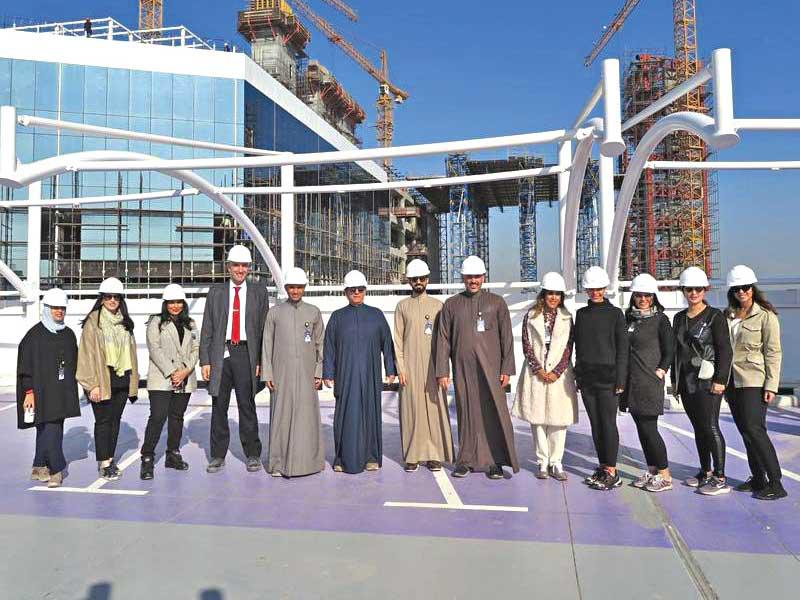نائب رئيس مجلس الادارة المدير العام لبنك الائتمان صلاح المضف شباب "الائتمان" متوسطا شباب «الائتمان» خلال جولة على المبنى الجديد