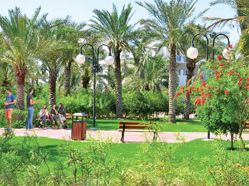 الجامعة تعتمد إجراءات وآليات مختلفة لتوفير بيئة صحية من خلال توفر مساحات خضراء واسعة