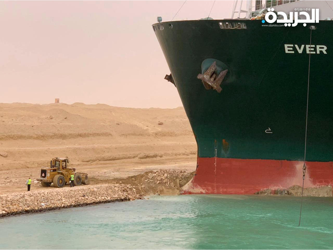سفينة عملاقة تسد قناة السويس لليوم الثاني