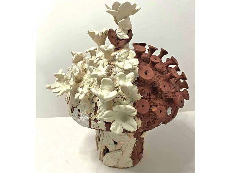 من جانبها، قالت الفنانة طليعة الخرس إنها تشارك بعمل "عناق الموت للحياة"، لافتة إلى أن الجهة البيضاء من العمل تشتمل على زهور متنوعة ومختلفة في أحجامها، إضافة إلى نضارتها، لتجسد بها الجيش الأبيض (الصفوف الأولى)، الذين كانوا يواجهون الصعوبات والموت يوميا من أجل حياة الآخرين. وشاركت الفنانة دلال ملك بعمل بعنوان "إشراقة حياة"، يوضح وصول جرعات اللقاح، مع بداية إشراقة للأمل والشفاء.بدورها، ذكرت د. مريم الديحاني أنها شاركت بعمل يعتمد على تأثيرات اللون، وأيضا التأثيرات الملمسية، مشيرة إلى أن بعض الألوان ترمز إلى الكآبة واليأس والتشاؤم، فيما هناك ألوان تدعو للحياة.الخزافون المشاركون