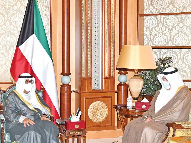 استقبل صاحب السمو أمير البلاد الشيخ نواف الأحمد، بقصر بيان، صباح أمس، سمو الشيخ ناصر المحمد، ونائب رئيس الحرس الوطني الفريق أول م. الشيخ أحمد النواف.كما استقبل سموه، رئيس غرفة تجارة وصناعة الكويت محمد جاسم الصقر.