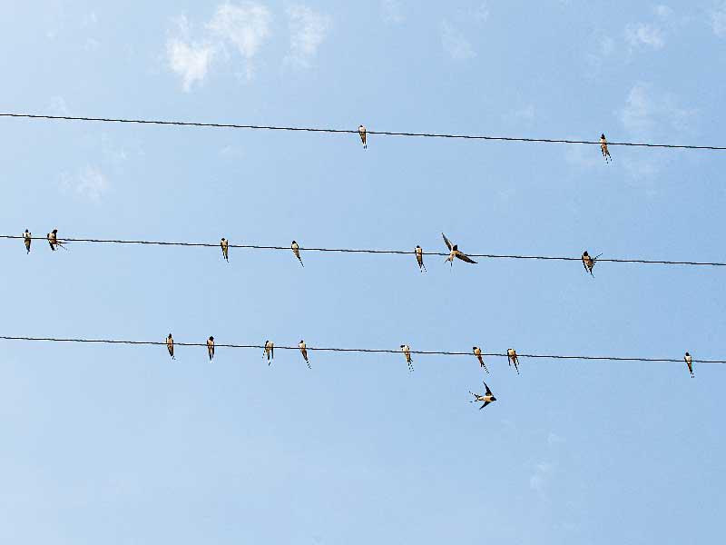 طيور "الرقيعي" أو "السنونو" من الطيور الشائعة التي تشاهد بكثرة خلال مرورها بالكويت في طريقها إلى إفريقيا في الخريف أو حين عودتها إلى الشمال مع بداية فصل الربيع. ومن المعروف أن "الرقيعي" لها القدرة على الطيران لمسافات طويلة وقلما تُشاهد ماشيةً على الأرض، لذا نراها على الأماكن المرتفعة وعلى أسلاك الكهرباء وأعمدة الهواتف الأرضية التي اختفت تقريباً بسبب التطور التكنولوجي. وتظهر الصورة التي التقطها عبدالمجيد الشطي مجموعة من الرقيعي وكأنها مجموعة عازفين في فرقة موسيقية.