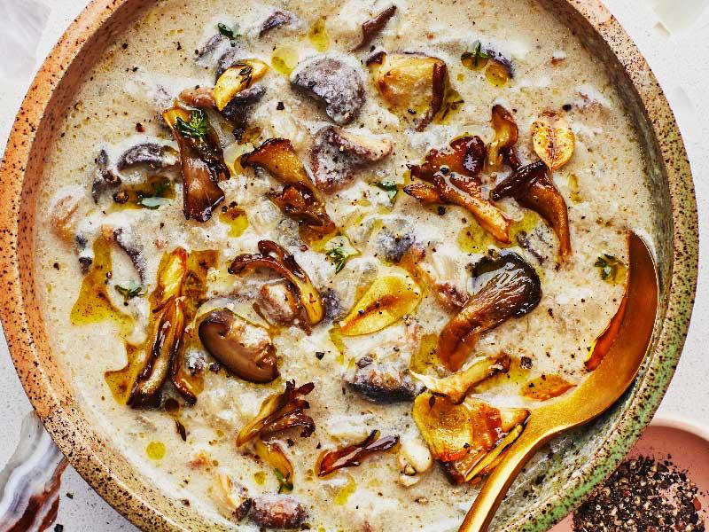 المقادير:2/1 كوب طحينةكوب فطر مقطع شرائح2 صدر دجاج من دون جلد4 فصوص ثوم مفروم2 كوب مرق دجاج2 ملعقة زيت زيتون4 ملاعق عصير ليمونملح وفلفل أسود (حسب الرغبة)2 ملعقة بصل أخضر مفروم الطريقة:- في مقلاة على نار متوسطة نضع زيت الزيتون ونشوَّح الدجاج مع إضافة قليل من الملح والفلفل الأسود لمدة 3-5 دقائق حتى يحمر كل جانب.- نخرج الدجاج من المقلاة ونضعه في صحن جانبي، وفي نفس المقلاة نضع شرائح الفطر مع الثوم ونقلبهم على نار هادئة لمدة 5 دقائق، ثم نضع الفطر والثوم جانباً في صحن الدجاج.- في نفس المقلاة، نضيف مرق الدجاج مع الطحينة وعصير الليمون، يُطهى على نار متوسطة مع التحريك المستمر لمدة 1-2 دقائق، ثم نضيف لخليط المرق والطحينة الفطر والثوم والدجاج، ونطهو المكونات كلها لمدة 5 دقائق مع ضبط الملح والفلفل، ونقدم الطبق ساخناً بعد تزيينه بالبصل الأخضر المفروم. سلطة البازلاء بالمايونيز والزبادي