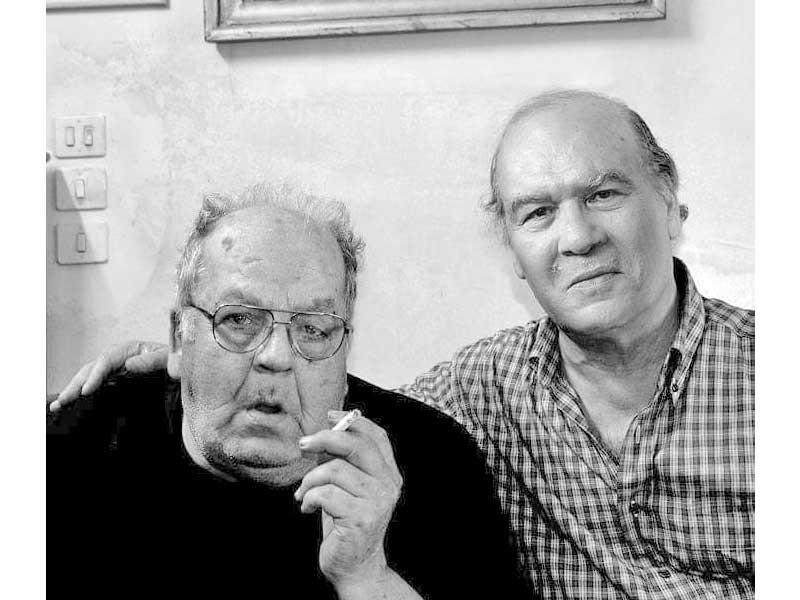 الماغوط مع الفنان التشكيلي السوري الراحل نذير نبعة
