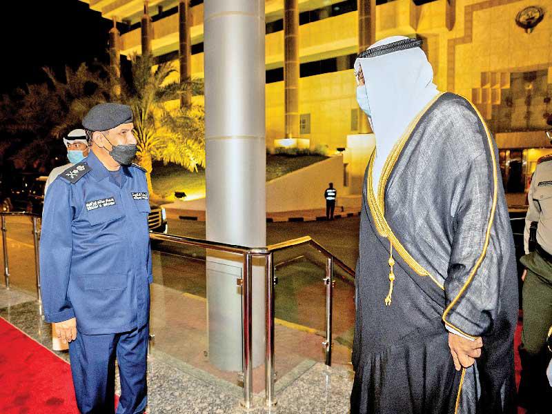 رئيس مجلس الوزراء سمو الشيخ صباح الخالد لدى وصوله إلى «الداخلية» وفي استقباله النهام