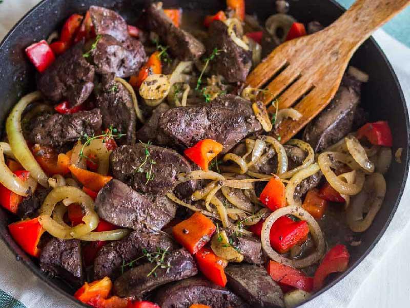المقادير:كيلوغرام كبدةحبة فلفل أحمر مقطعةملعقة صغيرة ملح2/1 ملعقة فلفل أسودملعقة صغيرة ثوم باودربصلة مقطعة إلى حلقات3 ملاعق كبيرة زبدة الطريقة:نقطع الكبدة إلى قطع صغيرة، ونتبلها بالملح والفلفل والثوم الباودر. وفي مقلاة كبيرة على درجة حرارة عالية نضع الزبدة، ثم نضع الكبدة المتبلة ونقلبها جيداً، ونتركها على النار لمدة ثلاث دقائق، ثم نضيف شرائح البصل وقطع الفلفل الأحمر، ثم نتركها لمدة 5 دقائق حتى يكتمل النضج.