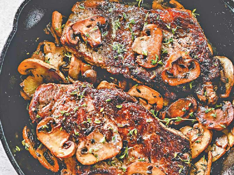 المقادير:4 شرائح لحم (ستيك)حبة بصل مقطعة2 حبة فلفل مقطعة شرائح3 ملاعق كبيرة زيت زيتون2/1 كوب فطر مقطع2/1 معلقة صغيرة فلفل أسودكوب جبنة موتزاريلاملح وفلفل أسود (حسب الرغبة)أوراق الزعتر الطازج للتزيين الطريقة:- نسخن الفرن على درجة 350، ونتبل الفطر بالملح والفلفل، وفي مقلاة كبيرة على نار متوسطة، نضع زيت الزيتون، ثم نضيف إليه البصل المقطع مع التقليب لمدة 5 دقائق حتى يذبل، ونضيف إليه الفلفل والفطر المقطع مع التقليب حتى يحمر المزيج.- نتبل الاستيك بالملح والفلفل ونطهوه على كلا الجانبين لمدة 5 دقائق حتى تمام النضج.- نضيف الاستيك إلى خليط الفطر ونتركه لمدة 20 دقيقة على النار، وبعد تمام النضج نضيف الجبنة الموتزاريلا ونتركه على النار لمدة ثلاث دقائق، ثم نضعه في طبق التقديم بعد تزيينه بأوراق الزعتر. كرات اللحم بالجبنة وصوص الطماطم