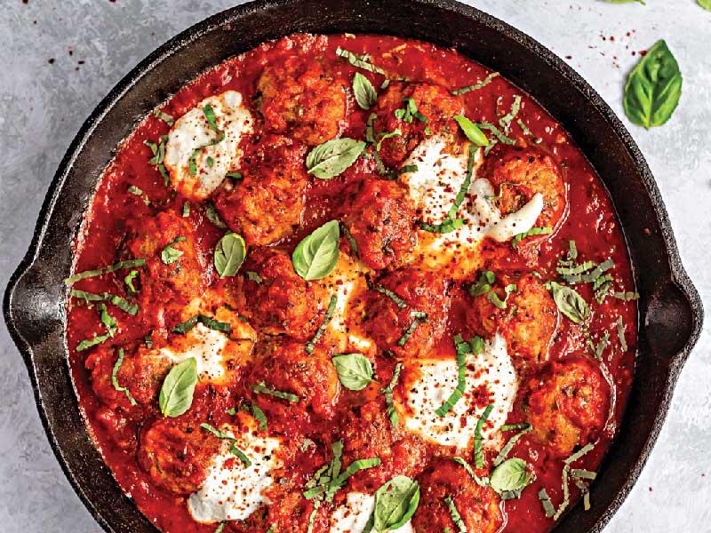 المقادير:كيلوغرام لحم مفروم2 فص ثوم2/1 كوب جبنة موتزاريلا2 ملعقة جبنة كريمية4/1 كوب جبنة بارميزان2 ملعقة كبيرة بقدونس مفرومبيضةملعقة كبيرة ملح2/1 ملعقة صغيرة فلفل أسود2 ملعقة كبيرة زيت زيتون للصلصةبصلة متوسطة مفرومة2 فص ثوم مفرومكوب صلصة طماطم4/1 ملعقة أوريغانوملعقة صغيرة توابلملعقة صغيرة ملح4/1 ملعقة كبيرة فلفل أسود الطريقة:- في إناء كبير، نمزج اللحم البقري المفروم والثوم، ثم نضيف إليهم الجبنة الموتزاريلا والبارميزان والبقدونس، ثم نضيف البيض والملح والفلفل إلى هذا الخليط، ونشكل الخليط على هيئة 16 كرة.- في مقلاة كبيرة على نار متوسطة، نضع كرات اللحم ونطهوها لمدة 10 دقائق مع استمرار التقليب على كل جانب، حتى يصبح لونها ذهبياً من جميع الجوانب، ثم نخرجها من المقلاة.- في المقلاة ذاتها، نضيف البصل ونطهوه لمدة 5 دقائق، ونضيف الثوم ونتركه لمدة دقيقة حتى يحمر، ثم نضيف إليهم صلصة الطماطم والأوريغانو والملح والفلفل والتوابل.- نضيف كرات اللحم إلى المقلاة، ونغطيها ونتركها على نار هادئة لمدة 15 دقيقة حتى تتكثف الصلصة، ثم نضعها في طبق التقديم ونضيف الجبنة الكريمية ونزين الطبق بأوراق الريحان الطازج أو البقدونس.