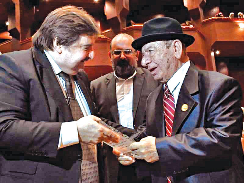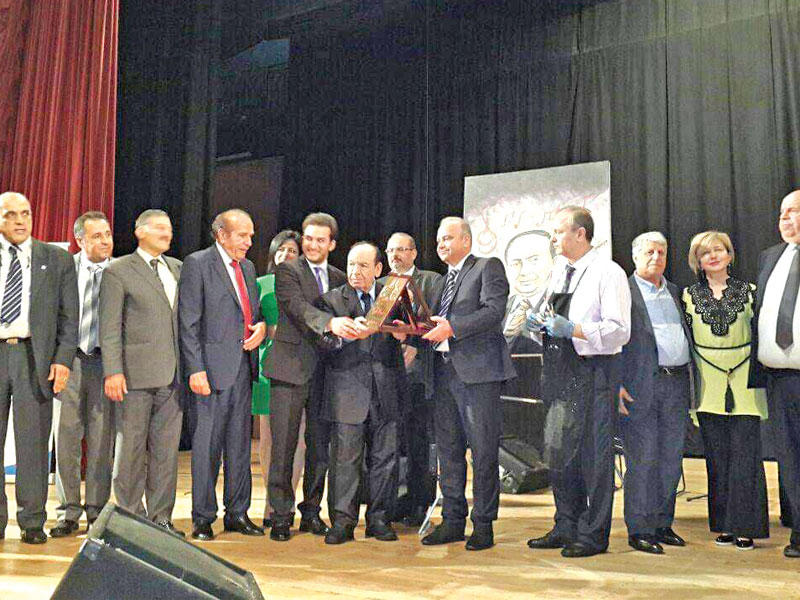 صباح فخري مع وزير الثقافة السوري محمد الأحمد بدار الأوبرا