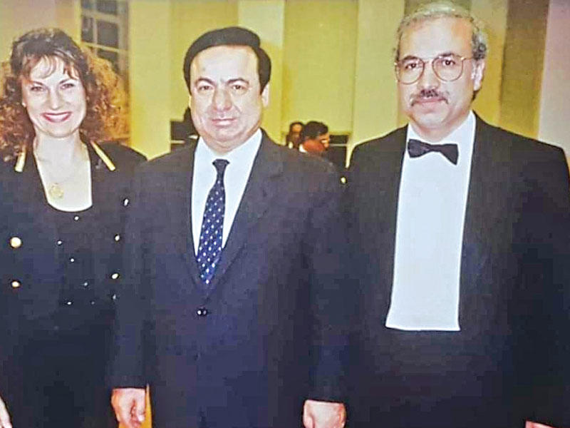 صباح فخري ومع أستاذ الموسيقى في جامعة UCLA د. جهاد الراسي وعقيلته باربارا راسي عام ١٩٩٢