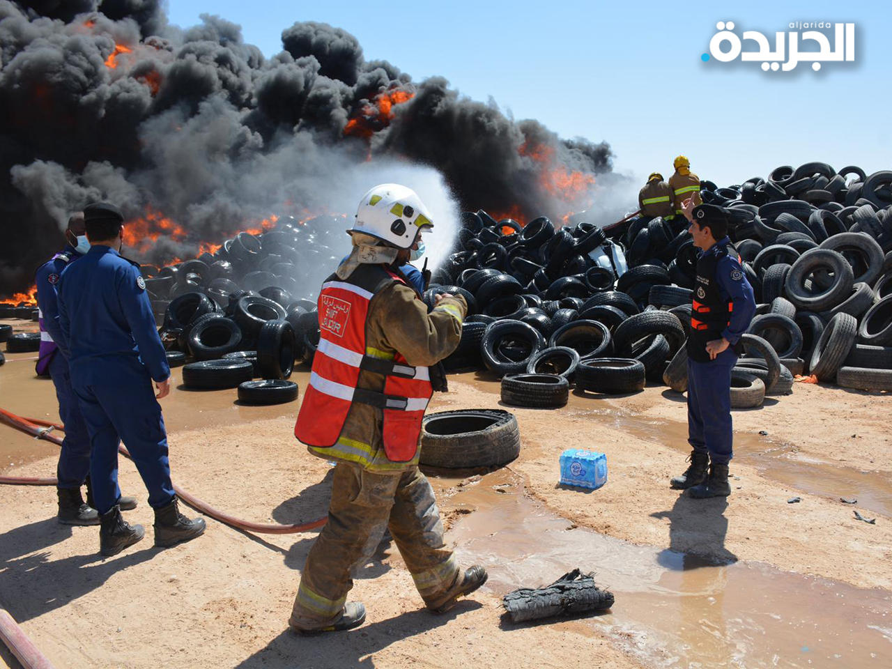 من جانبه، قال رئيس قوة الإطفاء العام الفريق خالد المكراد، لـ «الجريدة»، إن المساحة الكلية التي تقع عليها الإطارات تبلغ 1.5 مليون متر مربع، موضحاً أن الحريق امتد إلى 40 ألف متر مربع وشمل مليوني إطار، وكان بفعل فاعل.وأضاف المكراد أنه «تم فتح سواتر لعزل الإطارات بطول 500 متر وتم مكافحة الحريق عن طريق دفنه بالرمل، إلا أن الرياح وبُعد مصادر المياه وعدم توافر الاشتراطات الوقائية صعبت مهمتنا».فرق الإطفاء تواصل مكافحة حريق منطقة تجميع إطارات في السالمي pic.twitter.com/OeIyAgajGL