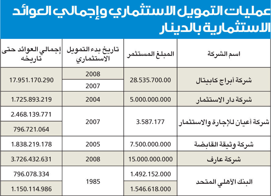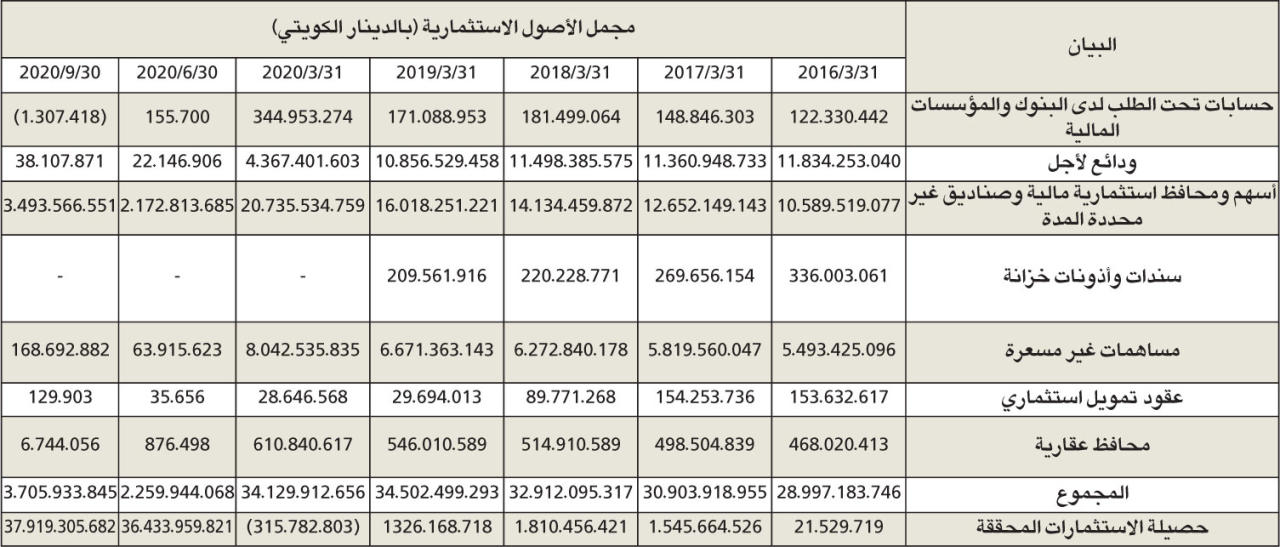 37.9 مليار دينار مجمل أصولها الاستثمارية في نهاية سبتمبر الماضي