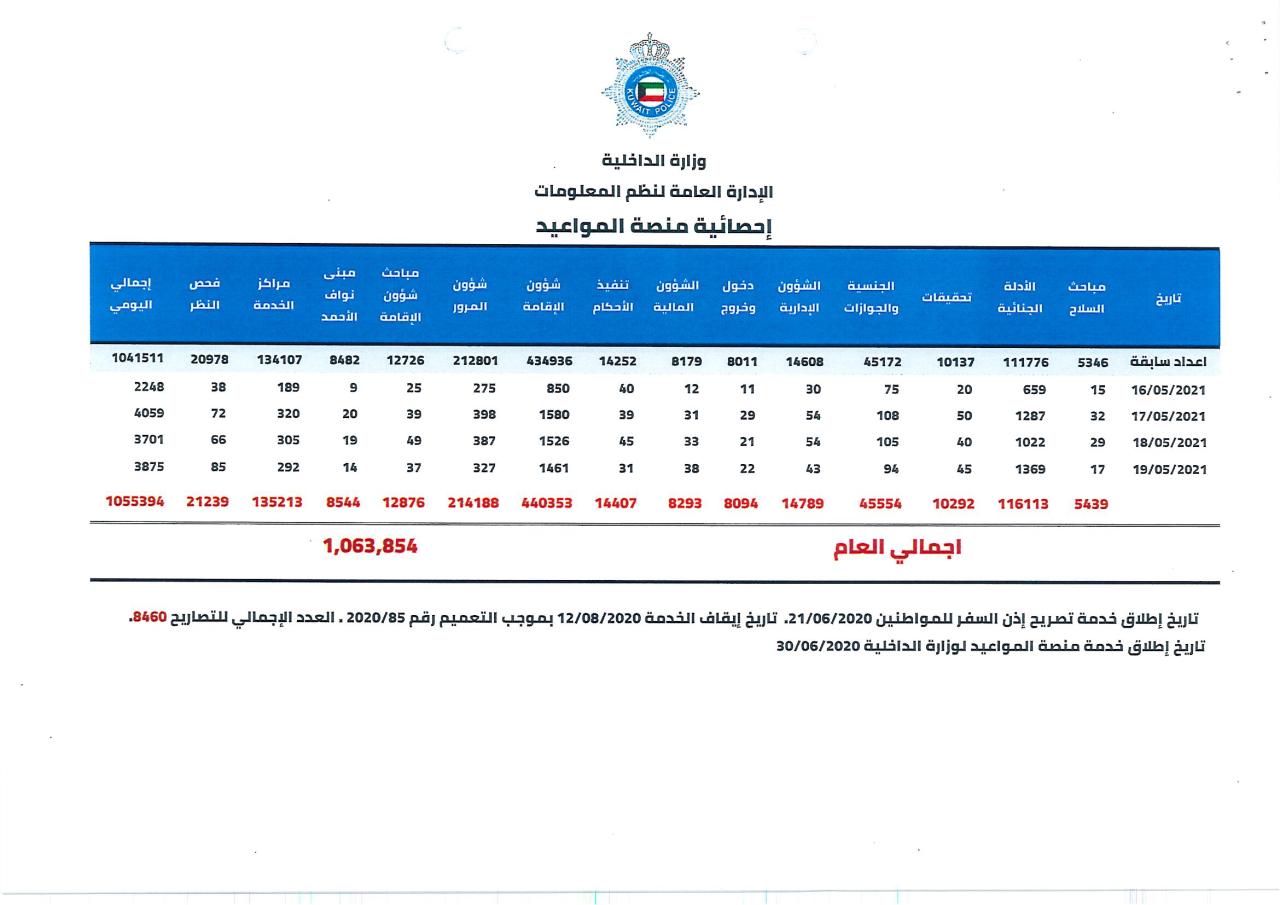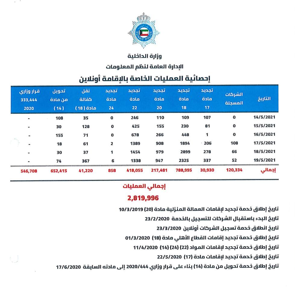 ذكرت الإدارة العامة للعلاقات والإعلام الأمني بوزارة الداخلية، أن الإدارة العامة لنظم المعلومات أنجزت، من خلال إحصائية العمليات الخاصة بإنجاز معاملات الإقامة عن طريق خدمة «أونلاين» عبر موقع وزارة الداخلية الإلكتروني منذ تاريخ إطلاق الخدمة، 2.819.996 معاملة، مشيرة إلى أن إجمالي ما تم استقباله وإنجازه على منصة المواعيد لإنهاء المعاملات هو 1.063.854 معاملة.وقالت الإدارة، في بيان أمس، إنه نظراً للظروف الراهنة التي تمرّ بها البلاد في مواجهة انتشار فيروس كورونا وتطبيق الاشتراطات الصحية، حرصا على صحة المواطنين والمقيمين، ووفق الجهود التي تبذلها المؤسسة الأمنية لتطوير قطاعاتها الخدمية، فإنها تواصل استقبال المراجعين الراغبين في إنهاء خدماتهم عن طريق «أونلاين»، عبر موقع وزارة الداخلية الالكتروني.وأوضحت الإدارة أن جميع معاملات قطاعات المؤسسة الأمنية تُجرى وفق تلك الآلية لتوفير الوقت والجهد وسرعة الإنجاز وتطبيق التباعد الاجتماعي في الإدارات الخدمية.