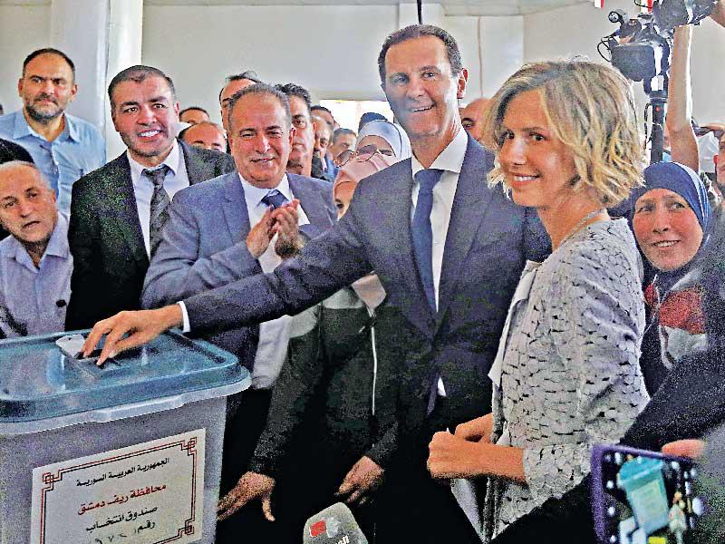 في ثاني اقتراع من نوعه منذ 2011، شارك السوريون أمس في انتخابات رئاسية ستمنح الرئيس بشار الأسد 7 سنوات إضافية في الحكم. الأسد الذي أدلى بصوته في دوما، استغل الفرصة للرد على بيان خماسي دولي شكك في الاقتراع، معتبرا أن رأيها يساوي صفراً.