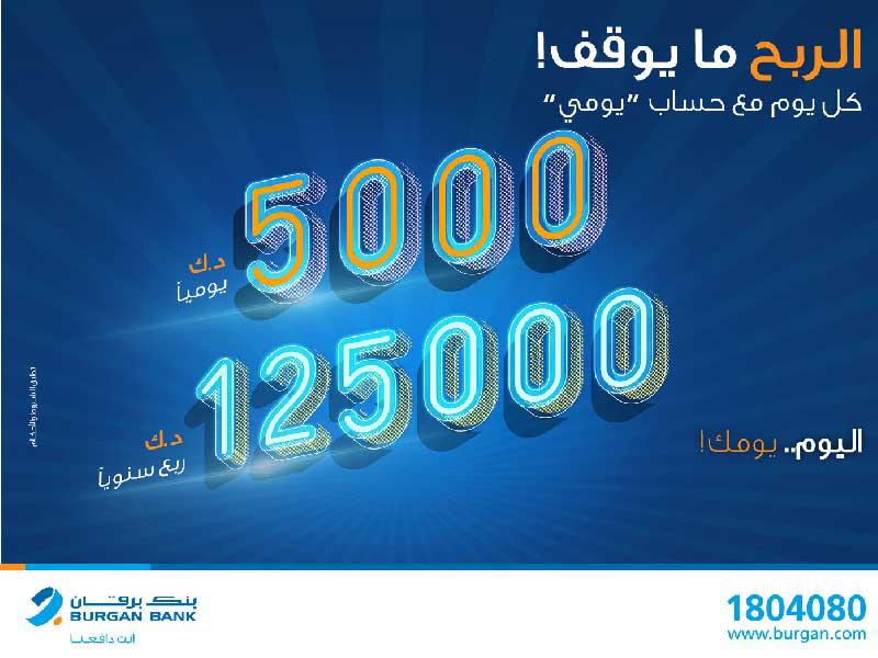 أعلن بنك برقان أسماء الفائزين في السحوبات اليومية على حساب يومي، وقد فاز كل واحد منهم بجائزة 5000 دينار، وكان الحظ في هذه السحوبات من نصيب:1. حسن اوسكان2. سهيل دحام ظاهر