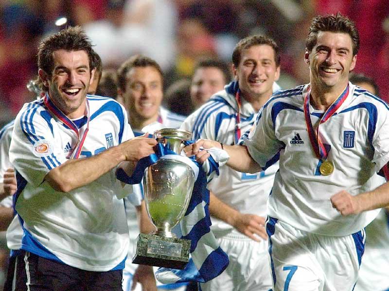 لم يكن المنتخب اليوناني بطل نسخة 2004 يضمّ في صفوفه أي نجم كبير، وكان أنغيلوس خاريستياس ويورغوس كاراغونيس أبرز لاعبيه. لكن هذا الامر لم يمنع فريقا يدربه الالماني الفذّ أوتو ريهاغل من مفاجأة الجميع والتأهل بفضل أسلوبه الدفاعي إلى الدور ربع النهائي إلى جانب البرتغال المضيفة، وعلى حساب إسبانيا وروسيا، ثم تخطي فرنسا بهدف لخاريستياس قبل مواجهة تشيكيا في دور الأربعة والفوز عليها بهدف وحيد أيضا بعد التمديد.واعتقد الجميع أن إنجاز اليونان سيتوقف عند النهائي لأنها ستواجه البرتغال المضيفة في المباراة النهائية، إلا أن ريهاغل عرف كيف يتعامل بواقعية مع المد الهجومي البرتغالي على أمل جرّ المضيف إلى التمديد وركلات الترجيح، إلا أن خاريستياس أهداه ما لم يكن بالحسبان بهزّه الشباك البرتغالية في الدقيقة 57، وكان ذلك كافيا لمنح بلاده لقبها الاول والاخير.