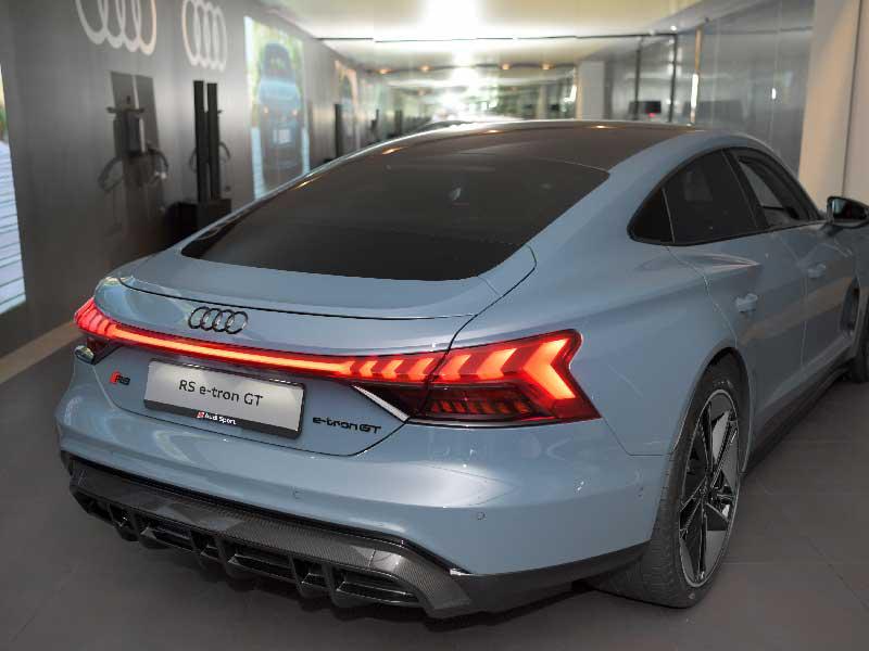وتؤكد الأناقة الفائقة لتصميم المقصورة على الطابع المتطور للسيارة.وتشترك e-tron GT مع سيارات غران توريزمو في أنها سيارة رياضية سياحية تتميز بالتحكم الديناميكي الفائق وأعلى مستويات الانسيابية والديناميكا الهوائية. وتبلغ طاقة المحرك الكهربائي 350 كيلوواط (476 حصانا) أو 440 كيلوواط (598 حصانا)، وفقاً للطراز المحدد، مما يساعد السيارة على الانطلاق بسرعة فائقة. وتعتبر المسافة التي تقطعها السيارة بعد شحنها من أهم المواصفات التي تميّز السيارة، حيث تصل إلى 487 كم (302.6 ميل، وفقاً لتوقعات اختبار السيارات الخفيفة الموحد عالمياً (WLTP)، وذلك بفضل البطارية التي تبلغ قدرتها الصافية 85 كيلوواط/ ساعة. ويتيح النظام الكهربائي بتقنية 800 فولت الشحن السريع للسيارة عبر التيار المستمر بقوة تصل إلى 270 كيلوواط. يعمل نظام التعليق أيضاً على موازنة الأداء الديناميكي والراحة، وذلك بفضل التقنيات المتطورة، مثل نظام Audi drive select، ونظام توجيه جميع العجلات، والتحكم في التخميد، والتعليق الهوائي الثلاثي الحجرات، ونظام الدفع الرباعي الكهربائي، والقفل التفاضلي على المحور الخلفي. ويصل قياس العجلات إلى 21 بوصة، في حين يبلغ قطر أقراص المكابح 420 مم (16.5 بوصة)، ويتوافر خيار تجهيز السيارة بمكابح من ألياف الكربون والسيراميك.وتُجهز سيارة e-tron GT بأحدث تقنيات الاتصال، على غرار جميع طرازات أودي، حيث تأتي مجهزة بأحدث نظام للمعلومات والترفيه وخدمات الإنترنت عبر نظام Audi connect وأنظمة المساعدة المتطورة. ولكي تُستكمل التحفة الفنية الديناميكية، فقد زودتت أودي سيارة e-tron GT بصوت فريد من نوعه، مما يعزز سمات سيارات أودي الأصيلة القوية والمتطورة.