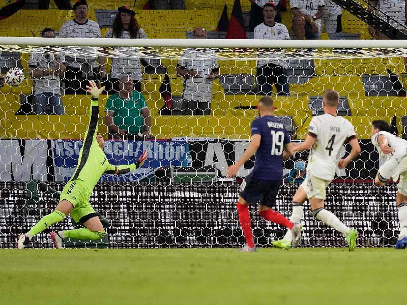 وهذه المرة الاولى التي يتلقى فيها منتخب الـ"مانشافت" بطل اوروبا ثلاث مرات، آخرها عام 1996، الخسارة في مباراته الافتتاحية في كأس أوروبا في 11 مشاركة (خمسة انتصارات ومثلها تعادلات سابقاً).وكان مدرب ألمانيا يواكيم لوف أعاد هوملز وتوماس مولر الى المنتخب بعد استبعادهما عقب الخروج المدوي من الدور الاول لكأس العالم 2018، قبل ان يعيدهما عطفاً على مستوياتهما مع نادييهما وانتقادات الصحافة والجماهير.وشهدت المباراة عودة المهاجم الفرنسي كريم بنزيمة الى بطولة كبرى للمرة الاولى منذ كأس العالم 2014، بعد أن استُبعد بسبب فضيحة الشريط الجنسي لزميله السابق ماتيو فالبوينا، وخاض غمار البطولة القارية للمرة الثالثة بعد يورو 2008 و2012.وحافظت فرنسا بطلة اوروبا عامي 1984 و2000، على سجلها خالياً من الهزائم ضد ألمانيا في آخر ست مباريات، وتحديداً منذ خسارتها ربع نهائي مونديال 2014 عندما سجل هوملز بالذات الهدف الوحيد في اللقاء. كما أنها لم تخسر على أرض ألمانيا في آخر ست مواجهات (مع اليوم)، حيث تعود آخر هزيمة الى ودية في برلين عام 1987.وهذا الفوز الرابع للمدير الفني لـ "الديوك" ديدييه ديشامب كمدرب على ألمانيا، مقابل تعادلين وهزيمتين، في حين سقط لوف للمرة الخامسة مدرباً امام المانشافت، مقابل انتصارين ومثلهما تعادل.وأمام 14 الف مشجع سمح لهم بالتواجد، نظراً للقيود المتعلقة بجائحة فيروس كورونا، جاء التهديد الاول في المباراة التي شكلت سادس مواجهة بين المنتخبين في بطولة كبرى، من رأسية لبول بوغبا علت العارضة، إثر ركنية من غريزمان هدّاف النسخة الماضية (16).وهدد كيليان مبابي (22 عاماً) الذي كان يخوض غمار نهائيات كأس أوروبا للمرة الاولى بتسديدة من الجهة اليسرى للمنطقة حوّلها الحارس مانويل نوير الى ركنية (17).