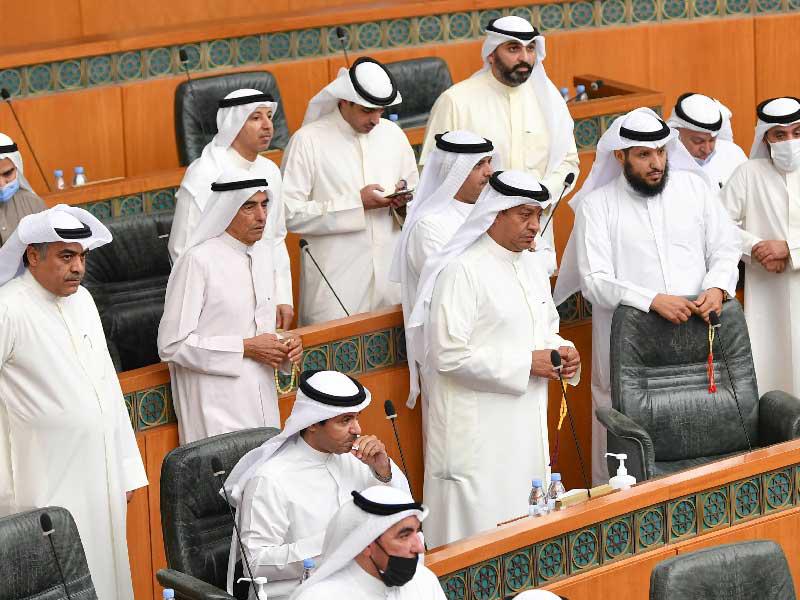 النواب على مقاعد الوزراء لدى افتتاح الجلسة أمس (تصوير عبدالله الخلف)
