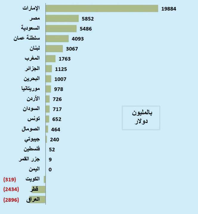 • الإمارات ومصر والسعودية وعُمان ولبنان تستحوذ على 95% من تدفقاته الإيجابية
