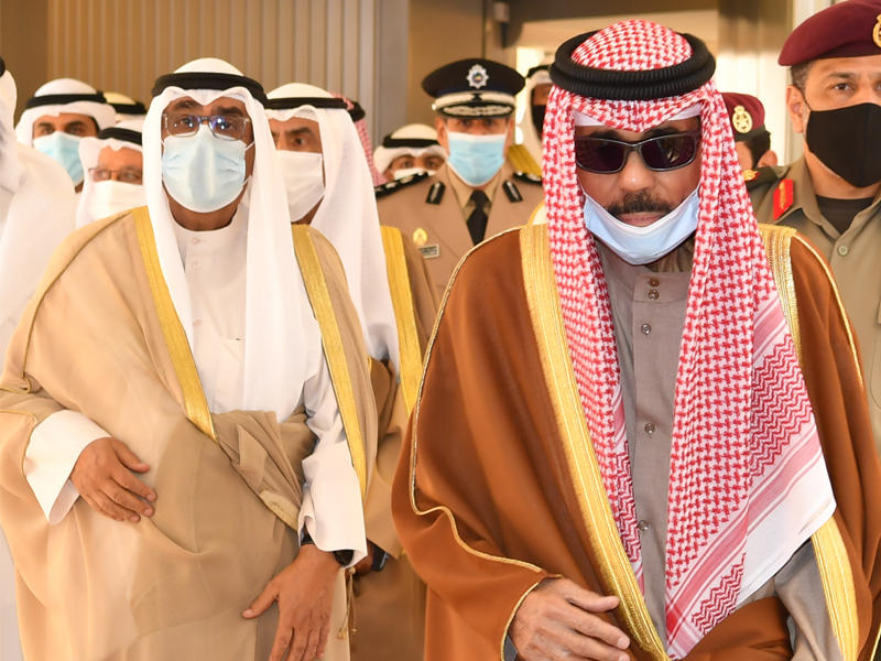 صاحب السمو أمير البلاد الشيخ نواف الأحمد لدى مغادرته وفي وداعه سمو نائب الأمير ولي العهد الشيخ مشعل الأحمد