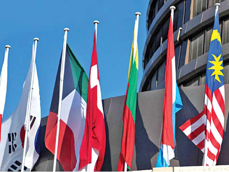 علم الكويت خفاقاً فوق بنك التسويات الدولية