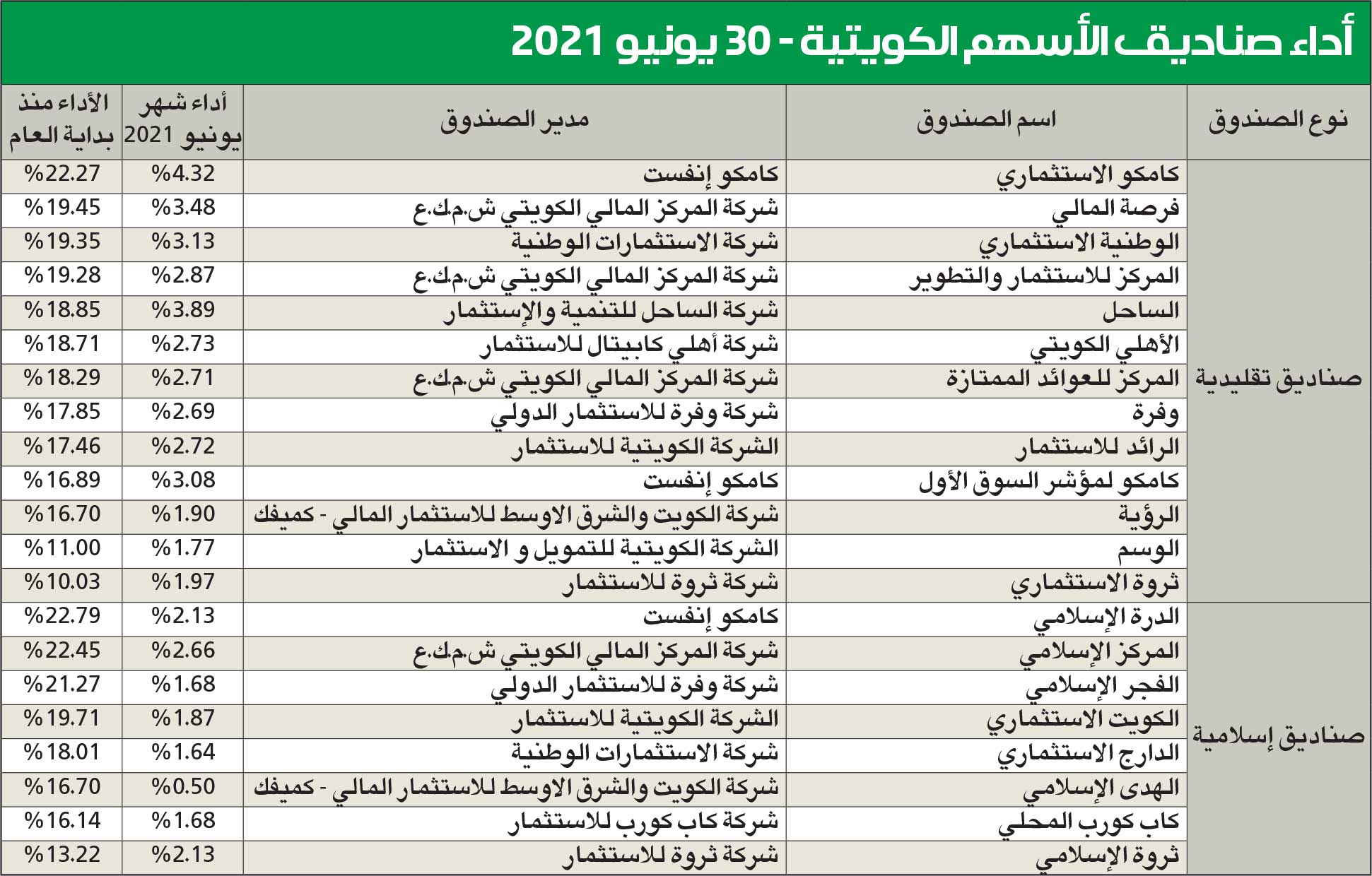 «الدرة الإسلامي» الأعلى أداءً بعائد 22.79% و«كامكو الاستثماري» بـ 22.27%