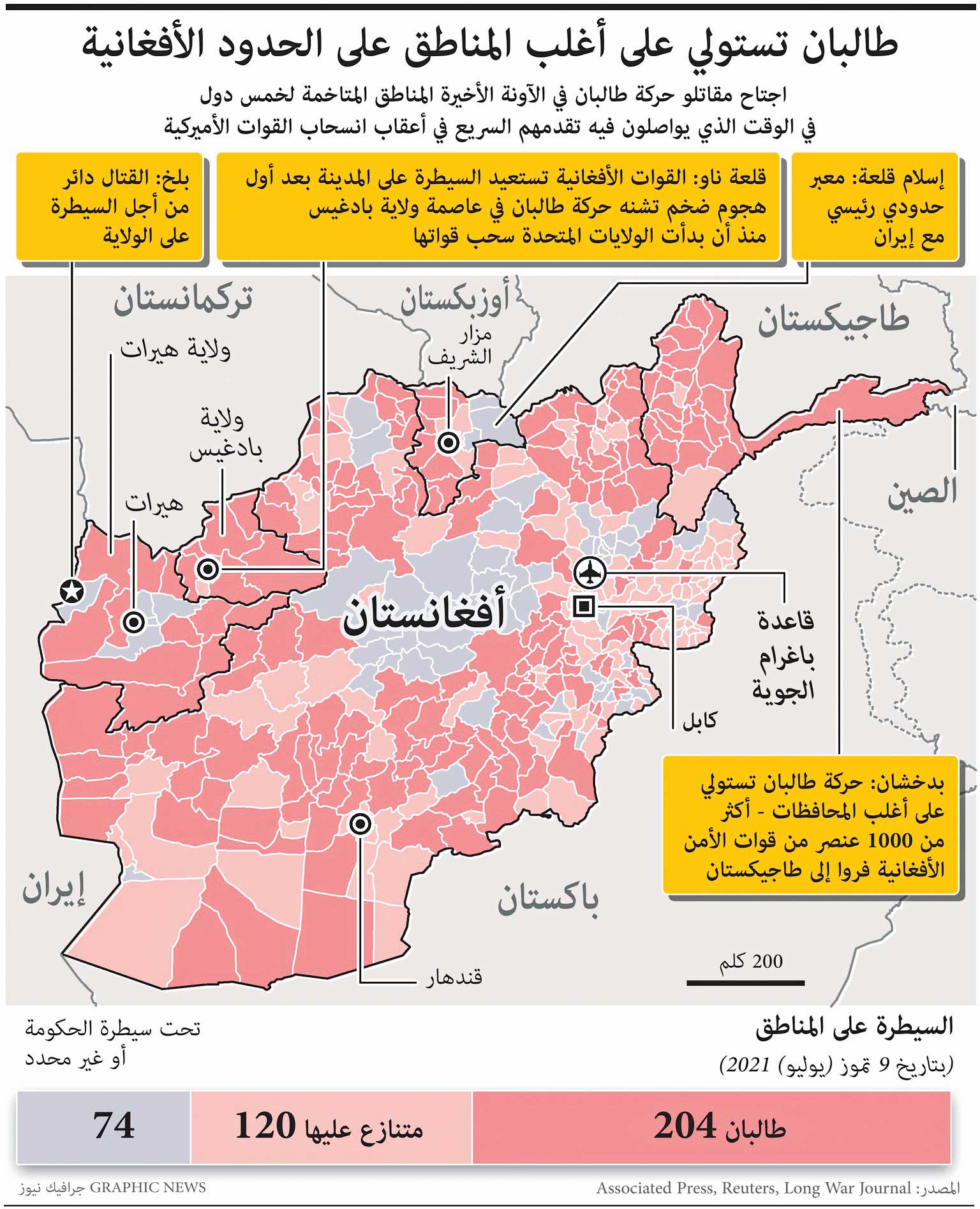 وفي اسلام آباد، قال مدير العلاقات العامة بين الخدمات الباكستانية اللواء بابار افتخار، إن بلاده وضعت قوات عسكرية في حال تأهب، وتعمل على تعزيز الأمن على الحدود مع أفغانستان.أضاف «تم تسييج 90 في المئة من الحدود الباكستانية ـــ الأفغانية، ونحن مستعدون بشكل جيد، وأن آلية أمن الحدود الحالية أفضل بكثير».وحسب افتخار، فإن وزارة الداخلية الباكستانية مستعدة لتدفق محتمل للاجئين من أفغانستان.من ناحية أخرى، أعلنت الشرطة الباكستانية، أمس، أنها فتحت تحقيقاً عقب تصوير مشاركين في جنازة زعيم ديني في بيشاور، عاصمة إقليم خيبر باختونخوا بشمال غرب البلاد، المتاخم لأفغانستان، وهم يرددون شعارات مؤيدة لـ«طالبان» ويلوحون بأعلام «إمارة أفغانستان الإسلامية» التي تستخدمها الحركة.أستراليا