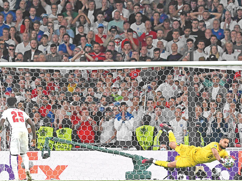 دخل الإيطالي جانلويجي "جيجو" دوناروما نادي الحرّاس الكبار بعدما قاد منتخب بلاده لتتويج منتظر للمرة الثانية في كأس أوروبا لكرة القدم بصده ركلتي ترجيح أمام إنكلترا على ملعبها في ويمبلي الشهير أمس الأول، ليحرز أيضاً لقب أفضل لاعب في البطولة القارية.هو بطل لندن! في سن الـ 22 عاماً يبدو مستقبل دوناروما براقاً، فبعدما فرض نفسه نجماً إثر صده ركلة ترجيح الإسباني ألفارو موراتا خلال سيناريو مماثل في نصف نهائي البطولة القارية، جدد "جيجو" مآثره في النهائي أمام جايدون سانشو وثم بوكايو ساكا، فيما سدد ماركوس راشفورد في القائم.اصطدمت تسديدتا سانشو وساكا باليد الصلبة للحارس الظاهرة لمنتخب "ناتسيونالي"، وقبلهما أرهقت نظراته راشفورد الذي سدد في القائم أمام مرمى خالٍ بعد ارتماء الحارس الإيطالي إلى الجهة المعاكسة.