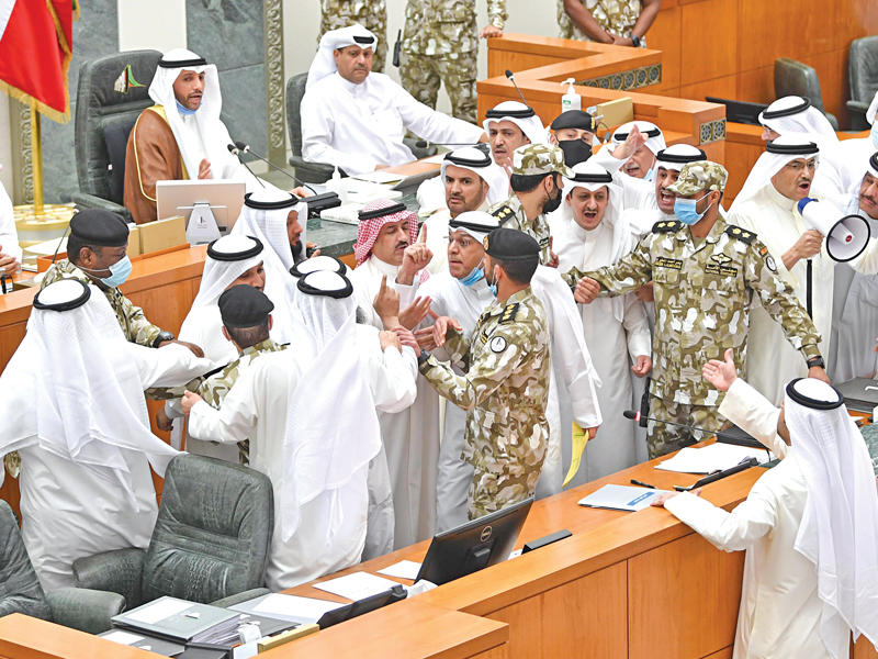 خيمت الأزمة السياسية التي عاشتها السلطتان التشريعية والتنفيذية منذ بداية دور الانعقاد الأول لمجلس الأمة، الذي انطلق قطار أعماله في 15 ديسمبر الماضي، حتى وصل إلى محطته الأخيرة 1 يوليو الجاري، على مستوى أدائه، حيث بلغت نسبة إنجاز المجلس في 199 يوما 6 في المئة فقط، فمن أصل 683 موضوعا، بينها 636 اقتراحا بقانون، و47 مشروعا بقانون، لم يقر المجلس خلال دور انعقاده الأول، الاستثنائي في أحداثه، سوى 41 تشريعا، ثلاثة منها قوانين عامة، و38 عبارة عن قوانين الميزانية العامة للدولة، منها اعتماد إضافي لصرف مكافأة الصفوف الأمامية.ولم تسلم الميزانية العامة للدولة من تداعيات الأزمة السياسية، حيث مرت في سابقة برلمانية، عندما صوتت الحكومة عليها واقفة نتيجة جلوس عدد من أعضاء المعارضة على مقاعدها، كما أقرها المجلس كمادة خام، كما وردت من الحكومة، بلا تقارير من لجنة الميزانيات والحساب الختامي البرلمانية، بسبب تأخرها في إحالتها إلى المجلس، حيث فعل المجلس المادة 161 من اللائحة الداخلية.