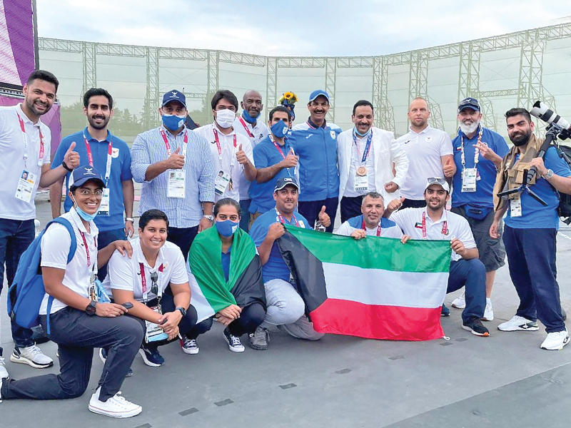 وأهدى البطل الأولمبي عبدالله الرشيدي هذا الإنجاز إلى مقام سمو أمير البلاد الشيخ نواف الأحمد وسمو ولي العهد الشيخ مشعل الأحمد وإلى الحكومة والشعب الكويتي كافة والشعوب العربية، متمنياً التوفيق لبقية اللاعبين الكويتيين والعرب الذي سيدخلون المنافسات خلال الأيام المقبلة. وأكد الرشيدي فخره واعتزازه بتحقيق هذا الإنجاز بالميدالية البرونزية للمرة الثانية على التوالي بعد أولمبياد ريو 2016 في البرازيل وأولمبياد طوكيو 2020، مؤكداً عزمه وإصراره على تطوير مستواه وتصحيح الأخطاء من أجل تحقيق حلمه بالتتويج في الميدالية الذهبية في أولمبياد باريس 2024. وذكر أن مشاركته في أولمبياد طوكيو 2020 باليابان هي المشاركة الأولمبية السابعة له خلال مسيرته الرياضية وتحقيقه للإنجاز الأولمبي بالحصول على الميدالية البرونزية مرتين متتاليتين يدل على ثبات المستوى الفني مبيناً أن ظهوره في الأولمبياد المقبل في باريس 2024 يجب أن يكون بأفضل صورة في ثامن مشاركة أولمبية له.وقال الرشيدي إنه يسعى من خلال خبرته الطويلة في ميادين الرماية ومشاركته في سبع دورات أولمبية إلى الاستفادة وتأهيل أكبر عدد ممكن من الرماة العرب للمشاركة في الدورات الأولمبية مستقبلاً.المري: الإنجاز يسجل باسم كل العرب