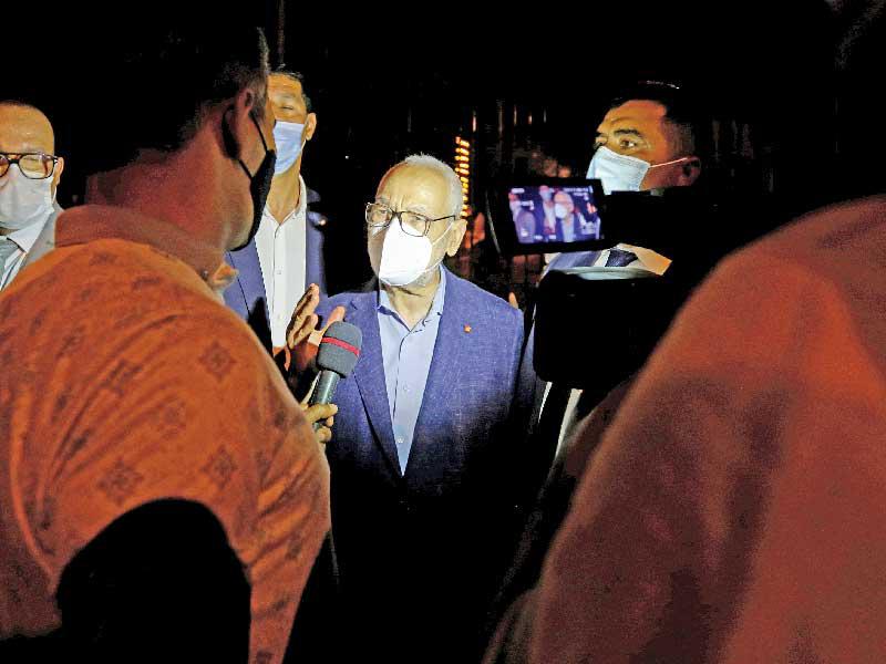 وأصدر سعيد، أمس أول، الأوامر التنفيذية التي بات يحكم من خلالها، وأمر بإعفاء رئيس الحكومة هشام المشيشي المكلف إدارة شؤون وزارة الداخلية، ووزير الدفاع إبراهيم البرتاجي، ووزيرة العدل بالنيابة حسناء بن سليمان، فيما بدا أنه تحرك إضافي لإغلاق الباب أمام مهام الإشراف على تصريف الأعمال. كما قرّر بمقتضى ذات الأمر، أن يتولى الكتاب العامون أو المكلفون بالشؤون الإدارية والمالية برئاسة الحكومة والوزارات المذكورة تصريف أمورها الإدارية والمالية لحين تسمية حكومة جديدة.وفي وقت سابق كلف سعيد المدير العام لوحدة الأمن الرئاسي خالد اليحياوي بالإشراف على وزارة الداخلية.الغنوشي والبرلمان