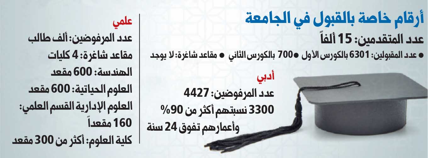 • رفض 3300 طالب «مسائي ومنازل» نسبتهم تتجاوز 90% وأعمارهم فوق الـ 24