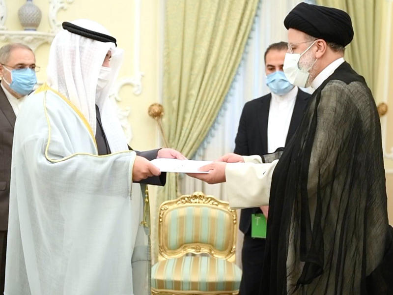 سلم ممثل صاحب السمو أمير البلاد الشيخ نواف الأحمد وزير الخارجية وزير الدولة لشؤون مجلس الوزراء الشيخ الدكتور أحمد الناصر، أمس الأول، رسالة خطية من سموه الى رئيس الجمهورية الاسلامية الايرانية آية الله سيد ابراهيم رئيسي.ونقل له تحيات وتهاني صاحب السمو له لتنصيبه رئيسا للجمهورية الاسلامية الايرانية وتمنياته له بالتوفيق والنجاح وللشعب الايراني الأمن والاستقرار والازدهار. والتقى ممثل سمو الأمير، على هامش زيارته الرسمية التي يقوم بها إلى العاصمة الإيرانية طهران، وزير الخارجية في سلطنة عمان بدر البوسعيدي.وتم خلال اللقاء استعراض مجمل العلاقات الثنائية المتينة والوطيدة التي تربط البلدين الشقيقين وبحث سبل تعزيزها وتنميتها بالإضافة الى مناقشة آخر التطورات الاقليمية والدولية.