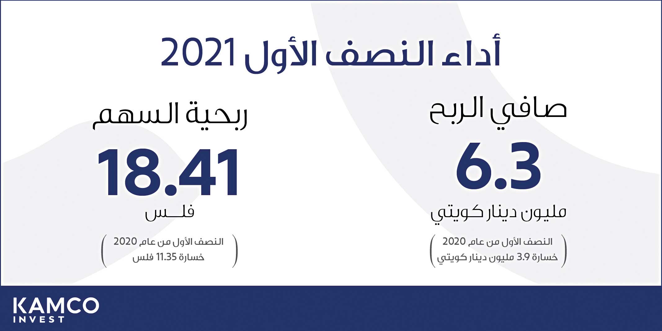 أعلنت "كامكو إنفست" بياناتها المالية لفترة الأشهر الستة المنتهية في 30 يونيو 2021، إذ حققت الشركة أرباحاً صافية بلغت 6.3 ملايين دينار (ربحية السهم 18.41 فلسا) مقابل خسائر بقيمة 3.9 ملايين في نفس الفترة من 2020 (خسارة السهم 11.35 فلسا). وارتفعت إجمالي الإيرادات لتبلغ 15.9 مليون دينار (النصف الأول 2020: 4.5 ملايين دينار)، وبلغت إيرادات الرسوم والعمولات 8.6 ملايين، ما يمثل 54.1 في المئة من إجمالي الإيرادات.ففي نهاية يونيو 2021، بلغ إجمالي الأصول المدارة 4.3 مليارات دينار (14.2 مليار دولار)، بارتفاع بنسبة 9 في المئة مقارنة بنهاية 2020 جراء استثمارات جديدة والأداء المميز للأصول المدارة.