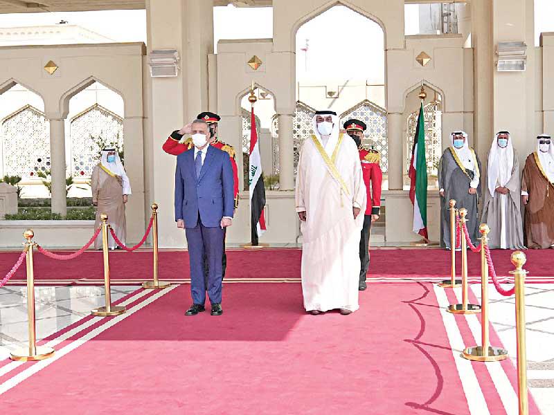 وكان رئيس الوزراء العراقي وصل والوفد المرافق الى البلاد أمس في زيارة رسمية تستغرق يوما واحدا، وكان في مقدمة مستقبليه على أرض مطار الكويت الدولي سمو رئيس مجلس الوزراء.وأجريت للضيف مراسم استقبال رسمية قام عقبها بتحية كبار مستقبليه وفي مقدمتهم نائب رئيس مجلس الوزراء وزير الدفاع الشيخ حمد الجابر، ونائب رئيس مجلس الوزراء وزير العدل وزير الدولة لشؤون تعزيز النزاهة عبدالله الرومي، ووزير الخارجية وزير الدولة لشؤون مجلس الوزراء الشيخ الدكتور احمد الناصر، ووزير الداخلية رئيس بعثة الشرف المرافقة الشيخ ثامر العلي، ورئيس ديوان سمو رئيس مجلس الوزراء عبدالعزيز الدخيل، وكبار قادة الجيش والشرطة والحرس الوطني وقوة الاطفاء العام، وكبار المسؤولين في الدولة وديوان سمو رئيس مجلس الوزراء، وسفيرا البلدين.وقال الكاظمي، أمس، ان التباحث مع القيادة السياسية في الكويت ضروري جدا لرسم خريطة طريق إقليمية تحدد بوضوح المتغيرات في المنطقة.ونقلت وكالة الانباء العراقية عن الكاظمي قوله قبيل مغادرته بغداد متوجها الى الكويت ان الكويت تمتلك رؤية حكيمة في السياسات الخارجية مرتكزة على إرث طويل من التجارب والمبادرات الخيرة التي تكللت بالنجاح.وأضاف: مع الكويت تحديدا جدول الاعمال هو صفحات مفتوحة من القلب الى القلب، وأن الكويت المستقرة الآمنة المرتاحة اقتصاديا مصلحة عراقية كما أن العراق المستقر الامن المرتاح اقتصاديا مصلحة كويتية.ومن جانبه، قال المكتب الاعلامي لرئاسة الوزراء في بيان ان «الزيارة تأتي ضمن مساعي الحكومة لتعزيز التعاون والعلاقات الثنائية مع مختلف الدول ومنها الكويت الشقيقة».ونقل البيان عن الكاظمي قوله ان الزيارة ستبحث في العديد من الملفات الاقتصادية والسياسية والطاقة والاستثمار وغيرها من الملفات، وتعزيزها بما يخدم مصلحة الشعبين الشقيقين.صاحب السمو يستقبل ولي العهد والغانم والخالد والجابر