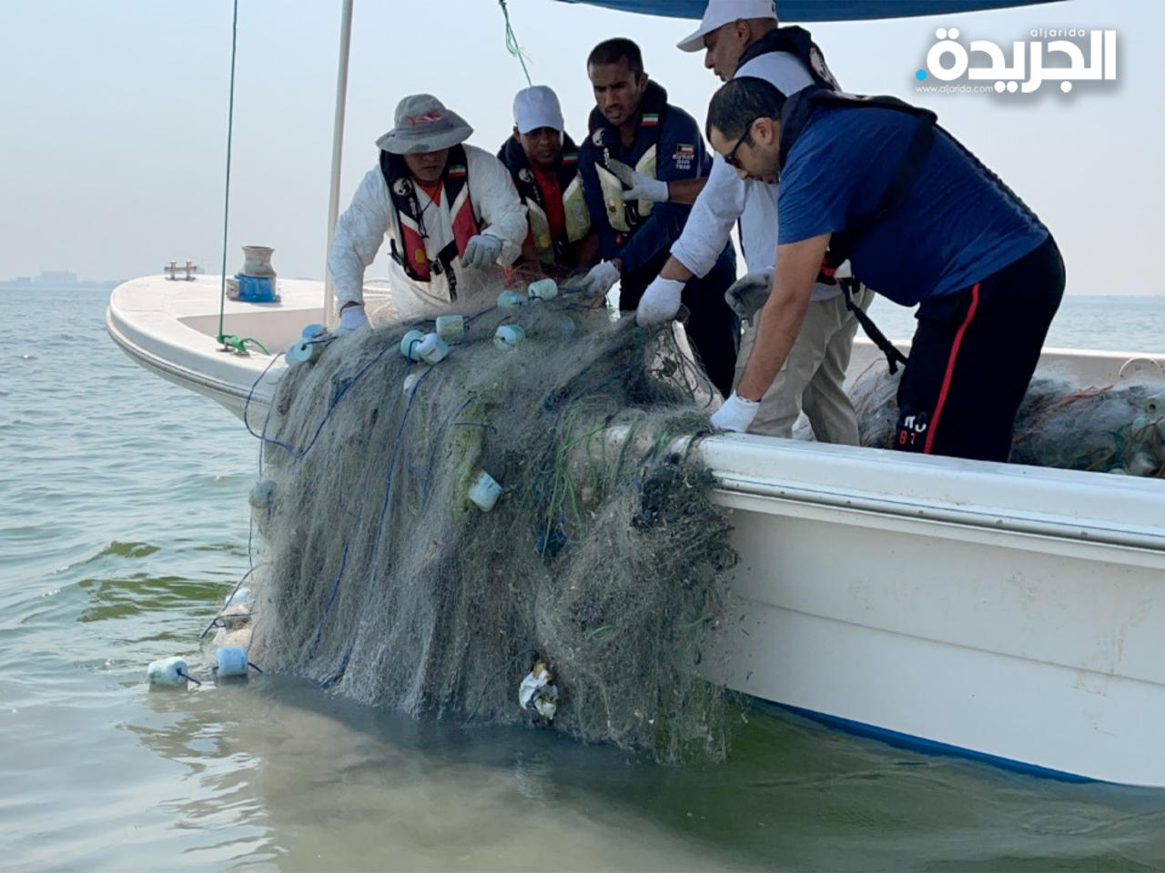 فريق الغوص يرفع طن من شباك الصيد جنوب جون الكويت