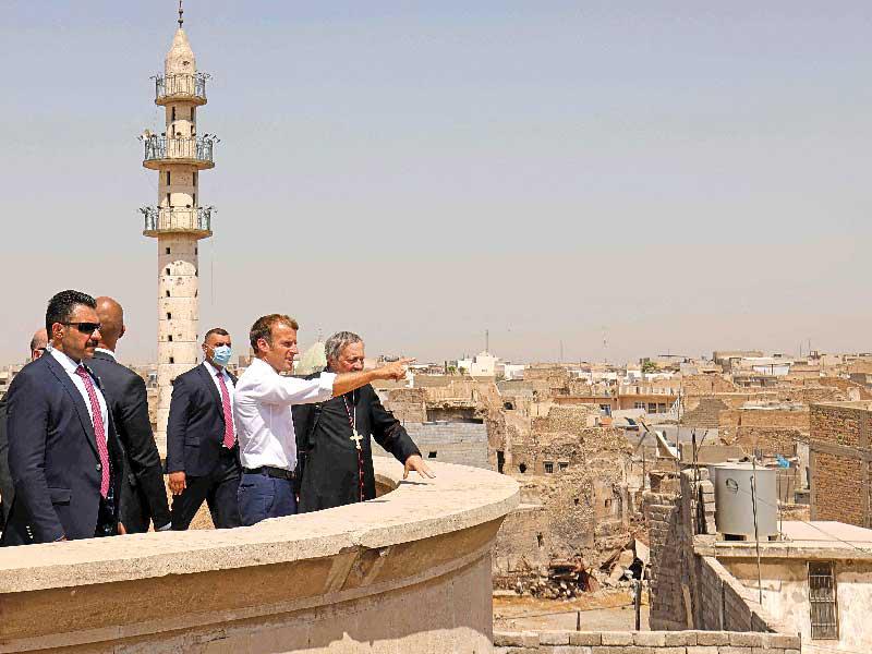 وطمأن الأقلية المسيحية في المدينة بدعم فرنسا المستمر، بين أمور أخرى في إعادة الاعمار للمباني التي تعرضت للدمار. وأضاف ماكرون، الذي كان يرافقه، وزير الخارجية العراقي فؤاد حسين أن فرنسا تلتزم بالتعددية الموجودة في الشرق الأوسط، حسب وكالة الانباء العراقية. وكانت الموصل مركز محافظة نينوى مهد إحدى أقدم الطوائف المسيحية في العالم، تعتبر «عاصمة» تنظيم «داعش»، الذي احتل لأكثر من ثلاث سنوات مساحات واسعة من العراق.ولا يزال الدمار واضحاً في سوق باب السراي التاريخي والمدينة القديمة، في حين تقول مصادر حكومية في تقديرات إن أكثر من 80 في المئة من بناها التحتية وأبنيتها لا يزال مدمراً.ومن موقع إعادة إعمار مسجد النوري السني، الذي دمره التنظيم المتطرف، قال ماكرون «حضوري هنا كرئيس فرنسي هو بمثابة تقديم الاحترام لما مرت به الموصل، والتفريق بين الدين وإيديولوجيا الموت. هو للقول إن المساهمة التي يمكن أن تقدمها فرنسا هناك هي وقبل كل شيء الإقرار بكل مكون من مكونات الشعب العراقي».وتعمل منظمة الأمم المتحدة للتربية والثقافة والعلوم (يونيسكو)، بتمويل من الإمارات العربية المتحدة يصل إلى خمسين مليون دولار، على إعادة إعمار المسجد والكنيسة كجزء من مشروع «إحياء روح الموصل».وقال ماكرون، الذي زار ليل الجمعة ـ السبت مرقد الإمام الكاظم في العاصمة بغداد «أمس كنت في مرقد شيعي، وسأرى الإيزيديين أيضاً... أعتقد أن المشاكل التي يواجهها العراقيون لا حل لها إلا بالعمل معاً».وفي أربيل، ذكّر ماكرون سلطات كردستان العراق بأن الحرب على الارهاب لن تنتهي، مؤكداً «قوة دعم فرنسا في مكافحة الإرهاب»، كما التقي بالزعيم الكردي مسعود البارزاني لتكريم المقاتلين الأكراد (البيشمركة).