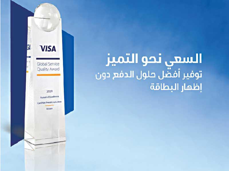 منحت مؤسسة Visa العالمية بنك الكويت الوطني جائزة السعي نحو التميز عن توفير البنك أفضل حلول الدفع دون إظهار البطاقة ضمن جوائز جودة الخدمة العالمية السنوية عن عام 2020 التي تمنحها المؤسسة للبنوك على مستوى منطقة الشرق الأوسط وشمال إفريقيا.وتمنح Visa الجائزة وفقاً لمجموعة من المعايير في مقدمتها، نمو حجم عمليات الدفع التي قام بها عملاء البنك دون الحاجة إلى إظهار بطاقاتهم خلال عام 2020 لإضافة إلى تفوق البنك في توفير حلول الدفع المناسبة التي تمكن العملاء من إتمام مدفوعاتهم دون إظهار بطاقاتهم. وأطلقت Visa برنامج جوائز جودة الخدمة العالمية (GSQA) داخل الولايات المتحدة في عام 1992 ليتوسع بعد ذلك إلى خارج الولايات المتحدة ليشمل شركاء Visa حول العالم في إطار حرصها على تحقيق أعلى مستوى من رضا العملاء من حاملي البطاقات المصرفية من خلال التحفيز على الابتكار والكفاءة التشغيلية.
