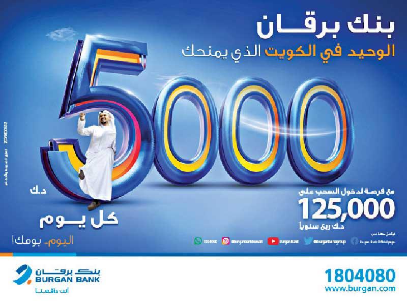 أعلن "برقان" أسماء الفائزين في السحوبات اليومية على حساب "يومي"، وقد فاز كل واحد منهم بجائزة 5.000 د.ك، وكان الحظ من نصيب:عزيزة جاسم حسن، وفوزية كامل الخالدي، وشروق أحمد قبازرد، وإيمان خلف كرم، وصالح بوخمسين، ونصار النصار.